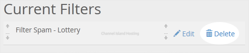 4. Under Current Filters, You can see all of your existing filters, Click on Delete next to the appropriate one.